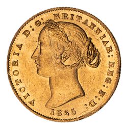 QUEEN VICTORIA, second type, 1865. Nearly uncirculated and rare in this condition, one of the ...
