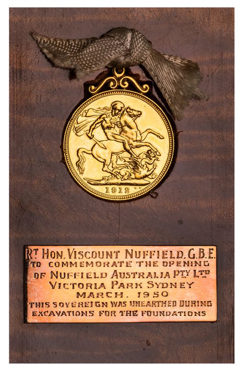 This sovereign was presented to George Alfred Lloyd CBE.^Nuffield Australia Pty Ltd was built on the site of Victoria Park Racecourse in Zetland, Sydney. The Morris Minor and Oxford cars were assembled there.