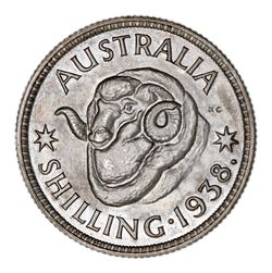 GEORGE VI, Melbourne Mint proof shilling, 1938. Brushed, good extremely fine and rare.