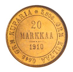 FINLAND, Republic, twenty markkaa, 1910L (KM.9.2). Choice uncirculated.
