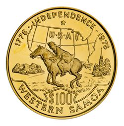 SAMOA, Malietoa Tanumafili II, proof one hundred tala, 1976(USA Bicentennial)(KM.21). In case of issue, unit ...