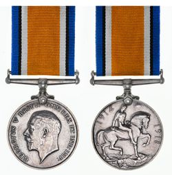 BRITISH WAR MEDAL 1914-18. 7017 Pte. W.H.Bland. 17 Bn. A.I.F. Impressed. Missing ribbon suspension bar, ...