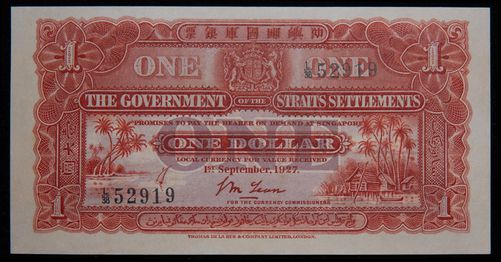 STRAITS SETTTLEMENTS, The Government of the Straits Settlements, one dollar, 1st September 1927, L/38 52919 ...