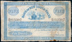 BANK OF NEW SOUTH WALES, five pounds, Sydney 1st April 1882 A/A 213307 (MVR type 7c, Pedigrees p.79). Very good.