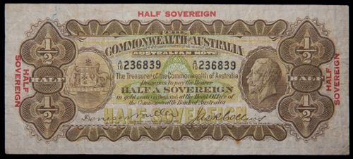 TEN SHILLINGS, Miller/Collins (1923), A/9 129242 (R.4). Vertical folds and repaired tear, otherwise good fine. ...