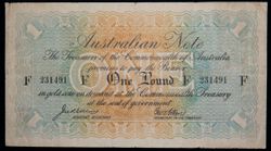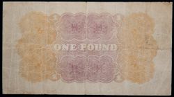 ONE POUND, Collins/Allen, (1915), No F 231491 F (R.20bL), last prefix emergency issue, "rainbow pound". Top left corner weakness, one pinhole, quarter folds, good colour for this issue, good fine and very rare, especially in this condition.