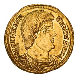 MAGNENTIUS, (AD 350-353), gold solidus, (4.33 g). Treveri Mint, issued AD 350, obv. around IM ...