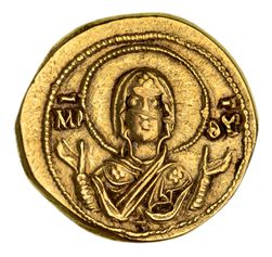 CONSTANTINE X, Ducas, (A.D. 1059-1067), gold tetarteron, (3.84 g), Constantinople Mint, obv. Virgin Mary nimbate facing, to sides MH**R* - **Q*V, rev. crowned bust of Constantine X facing, wearing loros, holding globus cruciger with his right hand and akakia with his left Christ bust facing with nimbus, around +Kwn RACIA ? **D*VK, (S.1849, DOC. 3a). A few scratches, very fine or better and scarce.