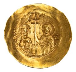 JOHN II, (A.D. 1118-1143), gold hyperpyron, Thessalonica Mint, (4.38 g), obv. IC-XC to left and right of Christ seated facing on backless throne, right hand raised, rev. around +IW-DECPOTH, QV-MR, facing half-length figures of Mary, nimbate, on right, and John, holding a patriarchal cross between them, hand of god above John's head, (S 1947, BMC 15-16). Good very fine - nearly extremely fine.