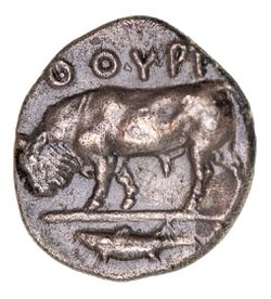 LUCANIA, Thurium, (c.350 BC), silver stater (7.16 g), obv. helmeted head of Athena right, rev. ...
