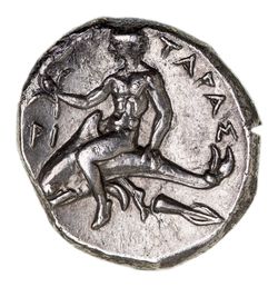 ITALY, Calabria, Tarentum (Taras), (c.280 B.C.), silver nomos, (7.78 g), obv. naked horseman dismounting left, ...