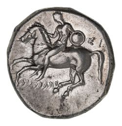ITALY, Calabria, Tarentum (Taras), (c.280 B.C.), silver nomos, (7.78 g), obv. naked horseman dismounting left, ...
