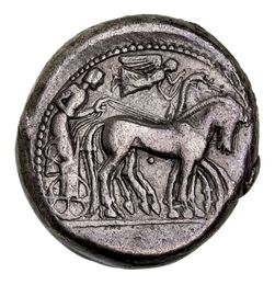 SICILY, Syracuse, (485-479 B.C.), silver tetradrachm (17.30 g), obv. slow quadriga driven right by male ...