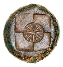 SICILY, Syracuse, end of second democracy and Dionysos I, (c.410-405 B.C.), AE 17 hemilitron, (5.33 g), obv. head of Arethusa to left, I behind, rev. quadripartite incuse square, at centre incuse circle containing a star, (S.1185, Calciati II, S. 41, Em. 18, HGC 1481). Attractive olive green patination, nearly extremely fine and very scarce.
