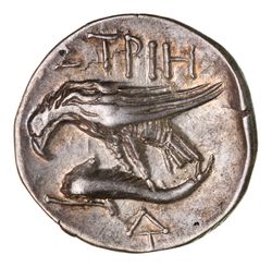 THRACE (MOESIA INFERIOR), Istros, (400-350 B.C.), silver drachm, (5.10 g), obv. two young male heads facing, side by side, right inverted, left upright, rev. sea-eagle standing to left on dolphin to left, which it attacks with its beak, below dolphin monogram **DI*, (cf.S.1669, SNG BMC 253, BMC 3, SNG Stancomb 147, Pick 421, Dima: Table II, sub-group IV, No.9 dates c313-c280 B.C.). Lightly toned, nearly extremely fine with traces of mint bloom.