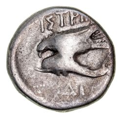 MOESIA, Istros, (c.280-56/5 BC), silver drachm (5.18g), obv. facing male heads, one inverted, rev. eagle standing on dolphin left, **ISTRIH* above, **DI* below (HGC 3.2 1803, AMNG 416 left, BMC 2, DIMA 2015). Fine. $ Ex Stephen J. Bridges Collection.