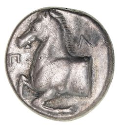 THRACE, Maroneia, (c.411/0-398/7 B.C.), silver tetradrachm, (12.02 g), obv. horse rearing to left, rev. **DE-OU-NU-S* ...