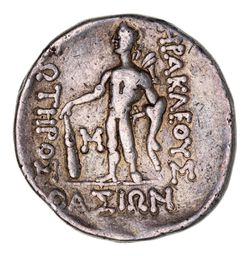 THRACE, Thasos, (after 148 BC), silver tetradrachm, (16.08 g), reduced Attic standard, obv. Dionysus right, wearing ivy wreath, rev. Herakles standing left, holding club and lion skin, M to left, **HRAKLEOYS SWTH POS QASIWN* to left, right, and below (HGC 6 359, S.1759, BMC 72). Toned, nearly very fine.