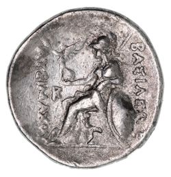THRACE, Kingdom of, Lysimaches, (323-281 B.C.), silver tetradrachm, (16.59 g), Byzantium Mint, issued after 282/1 B.C., obv. head of Alexander to right, with diadem and horn of Ammon, rev. Athena enthroned to left, supporting Nike, spear behind, R inner left, to right **BASILEWS*, to left **LUSIMAXOU*, (cf.S.6814, Thompson -, M.555, cf.Mektepini 121, Armenak - [ANS MN 31], SNG Cop. -, Meydancikkale -). Grey tone, good very fine/very fine and very rare.