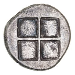 MACEDON, Terone, (424-422 B.C.), silver tetrobol or sixth stater, (2.41 g), obv. oinochoe to left, T E to sides, in dotted circle, rev. quadripartite incuse square, (cf.S.1291, Hardwick Group IV, AMNG III/2, 6, SNG ANS 751-2). Lightly toned, nearly extreley fine and rare in this condition.