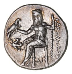 MACEDON, Kingdom of, Alexander III, (336-323 B.C.), silver drachm, (4.25 g), Lampsakos Mint, struck under Antigonos I Monophthalmos, As Strategos of Asia, issued 320-306/5 B.C., or king, 306/5-301 B.C., obv. head of Herakles to right wearing lion skin, rev. Zeus Aetophoros seated on throne to left, eagle in outstretched hand, forepart of Pegasos in left field, below throne AI, **ALEXANDROU* to right, (cf.S.6730, Price 1385, ADM II Series XVIII). Lightly toned, well centred, good very fine.
