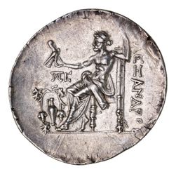 MACEDON, Kingdom of, Alexander III, (336-323 B.C.), silver tetradrachm, (16.81 g), Temnos Mint, issued before 188-170 B.C., obv. head of Herakles to right wearing lion skin with no border, rev. Zeus seated on throne to left, eagle in outstretched hand, amphora between arching vine in left field, **PA* and E in left field, to right **[A]LEXANDROU*. (cf.S.6713, Price 1676, BMC 1676a-b, M.956). Well centred, large, toned, good very fine and a rare issue.
