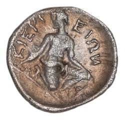 THESSALY, Kierion, (c.350-325 B.C.), silver trihemiobol (14mm, 1.26 g), obv. laureate head of Zeus right, rev. **KIER EIWN*, Arne half-kneeling left, casting astragaloi, **F* to right, (S.2066, BCD Thessaly I 1073 var (ethnic), BCD Thessaly II 100, HGC 4, 670). Toned, minor porosity, very fine and rare.