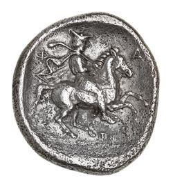 THESSALY, Pelinna, (c.last quarter 5th century B.C.), silver trihemiobol, (1.22 g), obv. Thessalian cavalryman on ...