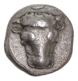 CENTRAL GREECE, Phocis, (457-446 B.C.), silver triobol, (2.88 g), obv. bull's head facing, rev. archaic ...
