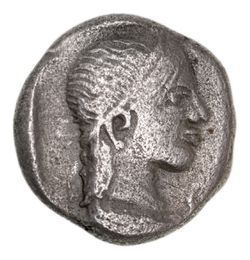 EUBOIA, Histiaia, (mid 4th century B.C.), silver tetrobol, (2.49 g), obv. nymph Histiaia head to ...