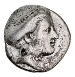 EUBOIA, Histiaia, (mid 4th century B.C.), silver tetrobol, (2.49 g), obv. nymph Histiaia head to ...