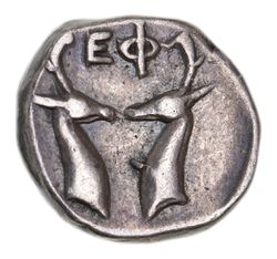IONIA, Ephesos, (c.390-325 B.C.), silver diobol, (9.5mm, 1.04 g, 12h), obv. Bee with straight wings, rev. two stag heads confronted, (S.4375, SNG Copenhagen 242, SNG Kayhan 208-42). Toned, slight die wear on obverse, struck on good metal, very fine and scarce.