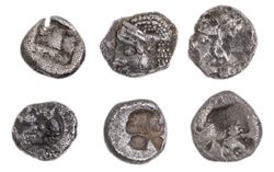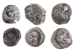 IONIA, Kolophon, (c.530/25-500 B.C.), silver tetartemorions, (0.14 - 0.20 g), obv. head of Apollo left, rev. incuse square punch, (S.-, Kim & Kroll pp. 84-103, SNG Kayhan 354). Toning, good fine - very fine. (6)