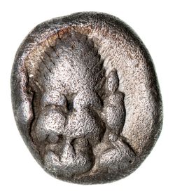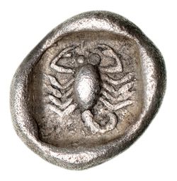 CARIA, uncertain mint, (early 5th century B.C., silver hemiobol, (0.58 g), obv. forepart of a lion facing, rev. scorpion, tail right, within incuse square, (S. -, SNG Berry II 1047, SNG Von Aulock 7803, ACNAC Rosen 403, SNG Kayhan 917 [Caria]). Very fine and very rare.