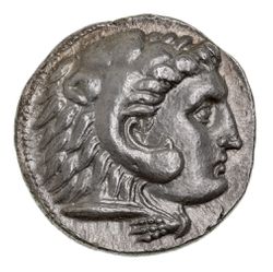 SYRIA, Kingdom of, Seleukos I, (324/3-300 B.C.), silver tetradrachm, (17.08 g), in the name and trypes of Alexander III, uncertain mint in the East, obv. head of Herakles to right, wearing lion skin headdress, dotted border, rev. Zeus Aetophoros seated left, holding eagle and sceptre, monograms in left field and below throne, **ALEXANDROU* to right, dotted border, (cf.S.6829. SC -, HGC -). Slight porosity, good very fine or better and extremely rare. Unpublished.
