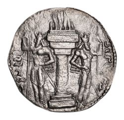 SASANIAN, Shapur I, (A.D. 241-272), silver drachm, (4.00 g), mint I (Ctesiphon), obv. "The Mazda worshipper, the divine Shahpur, the king of kings of Iran who is descended from the Gods" in Pahlavi, crowned and cuirassed bust right, wearing diadem and mural crown with ear flap and korymbos, rev. "Fire of Shahpur" in Pahlavi (crude), fire altar with attendants wearing mural crowns, (Sellwood 12, SNS Type IIc/1a. Karlsson D4, Gobl I/1. cf.Sunrise 741). Good very fine.