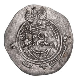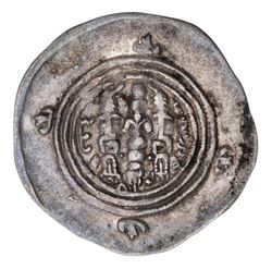 ARAB-SASANIAN, Umayyad Caliphate, style of Sasanian, Khusru II (A.D. 590 - 627), silver drachm, (3.95 g), Darabgird Mint, dated year 31 (A.D. 621), with word "praise" in outer margin, (cf.Walker alpha [p.2] Plate I, alpha, cf.M.21, Sellwood type 62, Gobl 214). Very fine, scarce.