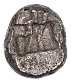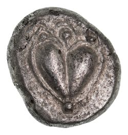 KYRENAICA, Kyrene, (c.510-490 B.C.), silver tetrobol, (2.38 g Asiatic standard), Period I 1A, obv. Silphium fruit, rev. incuse square with irregular lines, (cf.S.-, SNG Cop.-, BMC p xxii 6a). Lightly toned, light porosity, very fine and very rare.