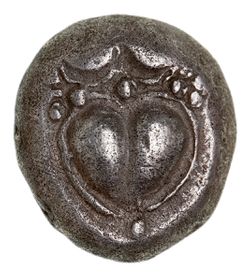 KYRENAICA, Kyrene, (c.520-489 B.C.), silver drachm, (3.85 g, Attic standard), obv. two heart-shaped silphium fruits ...