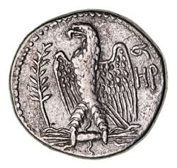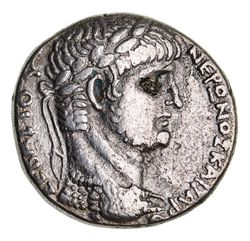 SYRIA, Seleucis and Pieria, Antioch, Nero, (54-68 AD),^silver tetradrachm (11.62g), RY 6 (59/60 AD), obv. laureate bust right, wearing aegis, **NERWNOS KAISAROS SEBASTOS*, rev. eagle standing left on thunderbolt, wings spread, dot and palm branch before, **S HR* to right (S.617; RPC 4180; Prieur 80). Adhesions on obverse, very fine.