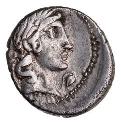 L. CALPURNIUS PISO L.F L.n Frugi, (90 BC), silver denarius (3.82g), Rome mint, obv. laureate ...