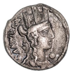 M. PLAETORIUS M.F. Cestianus, (67 BC), silver denarius (3.44 g), obv. turreted head of Cybele ...