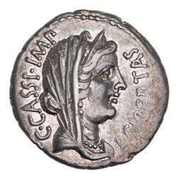 C. CASSIUS LONGINUS, (died 42 B.C.), denarius, issued Spring 42 B.C., military mint in the ...