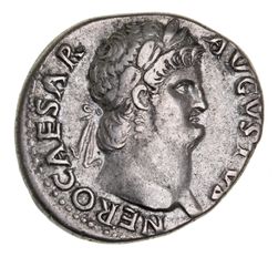 NERO, (A.D. 54-68), silver denarius, issued c.66-67, Rome Mint, (3.44 g), obv. laureate head to ...