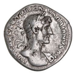 HADRIAN, (A.D. 117-138), silver denarius, Rome Mint, issued A.D. 117, (3.26 g), obv. laureate head ...