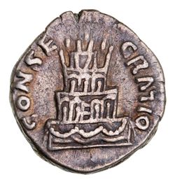 DIVUS ANTONINUS PIUS, (A.D. 138-161), silver denarius (3.39g), Rome mint, posthomous issue under Marcus Aurelius, issued 162 AD, obv. bare head facing right, DIVVS ANTONINVS rev. CONSECRATIO around, pyramidal crematorium of four storeys, garlanded base, surmounted by emperor in quadriga (S.5193; RIC III 436; RSC 164). Toned, nearly very fine.