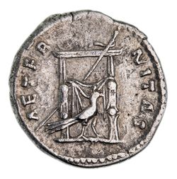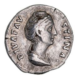 FAUSTINA SENIOR, wife of Antoninus Pius, (died A.D. 141), silver denarius, issued in 150, (3.05 g), obv. DIVA FAVSTINA, draped bust to right, rev. AETERNITAS, sceptre resting against throne of Juno, peacock in front, (S.4579, RIC 353, RSC 61). Very fine.