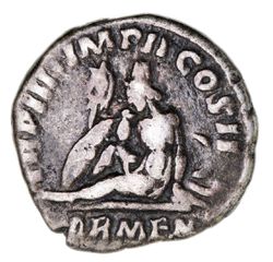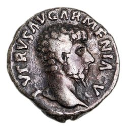 LUCIUS VERUS, (A.D. 161-169), silver denarius, issued 163, Rome Mint, (3.12 g), obv. L VERVS AVG ARMENIACVS, bare head to right, rev. captive Armenia in attitude of mourning seated to left on ground amidst arms, around TR P III IMP III COS II, (cf.S.5347, RIC 526, RSC 255). Toned, nearly very fine and scarce.