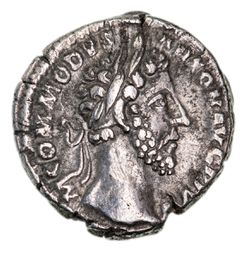 COMMODUS, (A.D. 177-92), silver denarius (2.53g), Rome mint, issued 189 AD, obv. laureate head right, ...