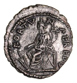 PESCENNIUS NIGER, (A.D. 193-194), silver denarius, Antioch Mint, issued A.D. 193-194, (2.57 g), obv. laureate head of Pescennius Niger to right, around IMP CAES C PESCE NIGER IVST AVG, rev. around FORTVNAE REDV, Fortuna seated left, holding rudder and cornucopiae, (S.6107, RIC 23, RSC 23). Toned, nearly extremely fine and very rare. Better silver quality as usual.